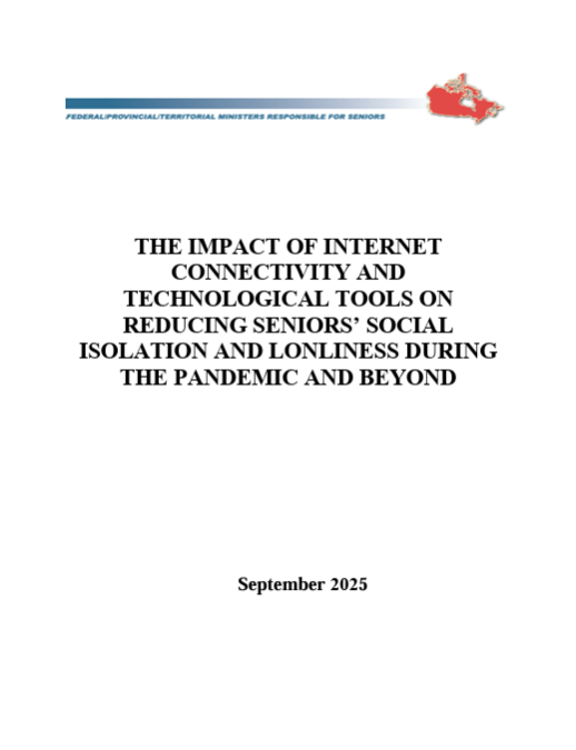 This report examines the use of internet connectivity and technological tools among seniors, caregivers and senior-serving organizations, the impact of this on reducing seniors’ social isolation and loneliness during the pandemic, and how seniors’ usage of the internet and technology has changed from pre-pandemic.